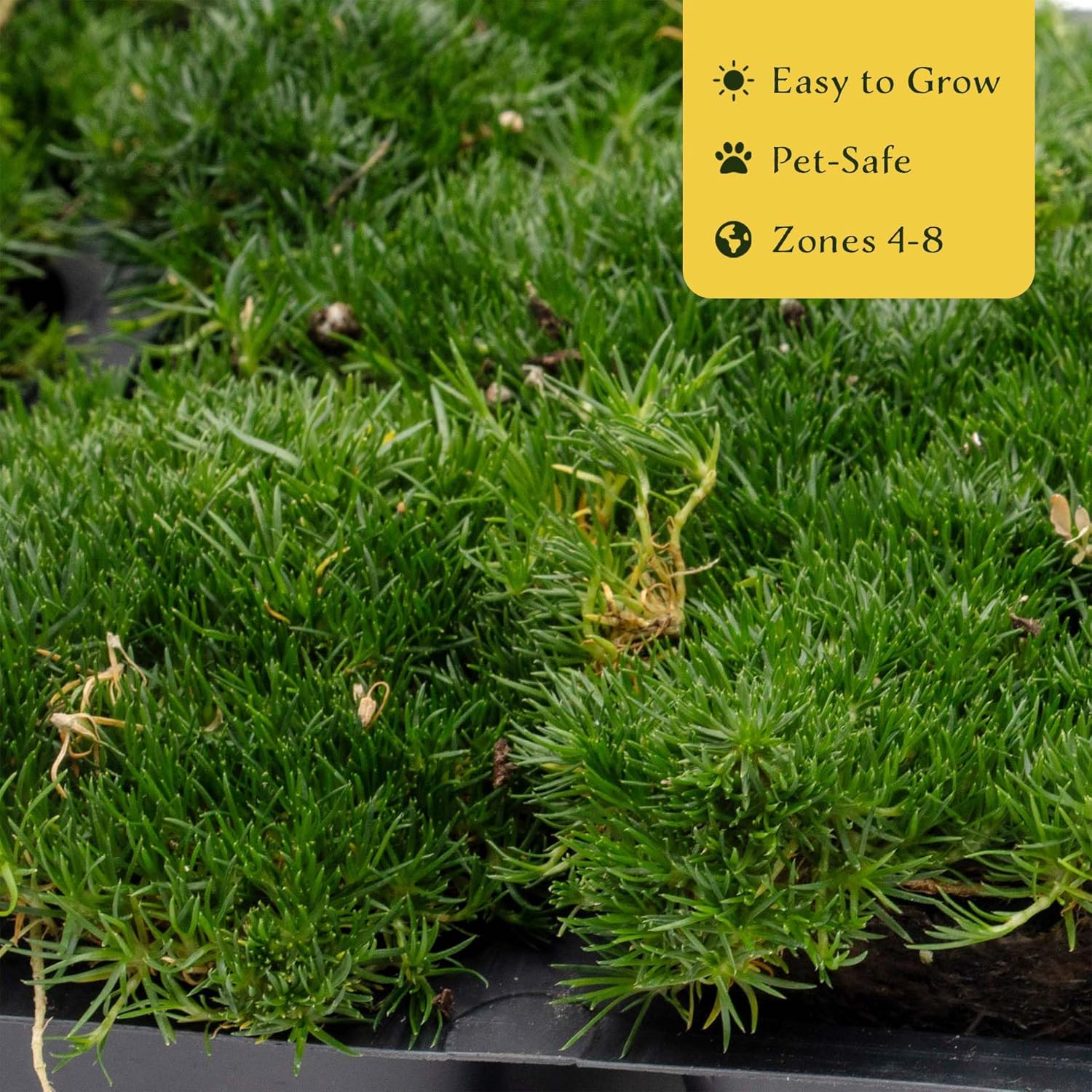 - ABOUT THIS PLANT: Low-growing, evergreen perennial groundcover, hardy for USDA Zones 4–8. Can mature to 1–2 inches tall and 6–12 inches wide. Thrives in full sun to partial shade and well-draining soil. Features lush, moss-like green foliage and tiny star-shaped white flowers in late spring to early summer and is an excellent choice for pet-friendly landscaping.
