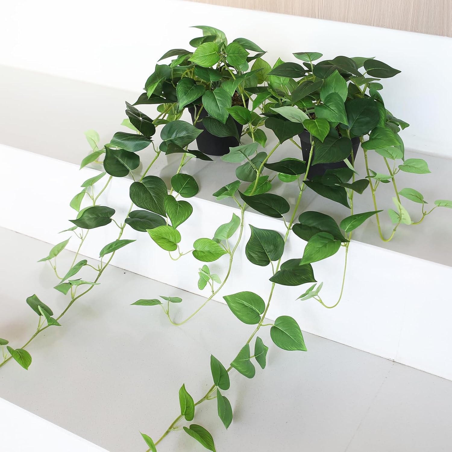 alyptus Fake Pothos Hanging Plants u2013 33″ Set of 2 Faux Ivy Vines with Pots, Realistic Silk Devilu2019s Ivy for Indoor Décor, Low Maintenance Artificial Greenery for Home Bathroom or Office – Green