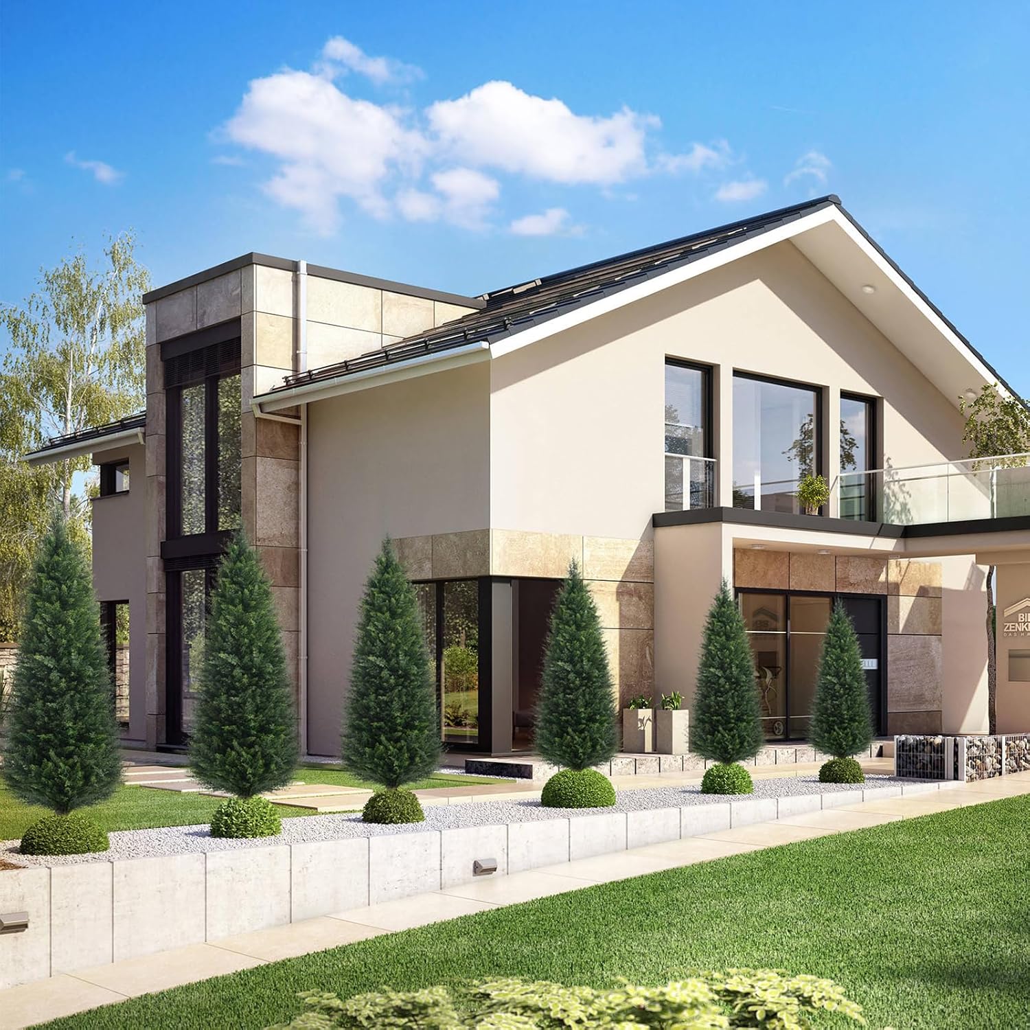 Grewyear 21" Artificial Cypress Topiary Outdoor Plants with Spike, 4 Pack Fau…