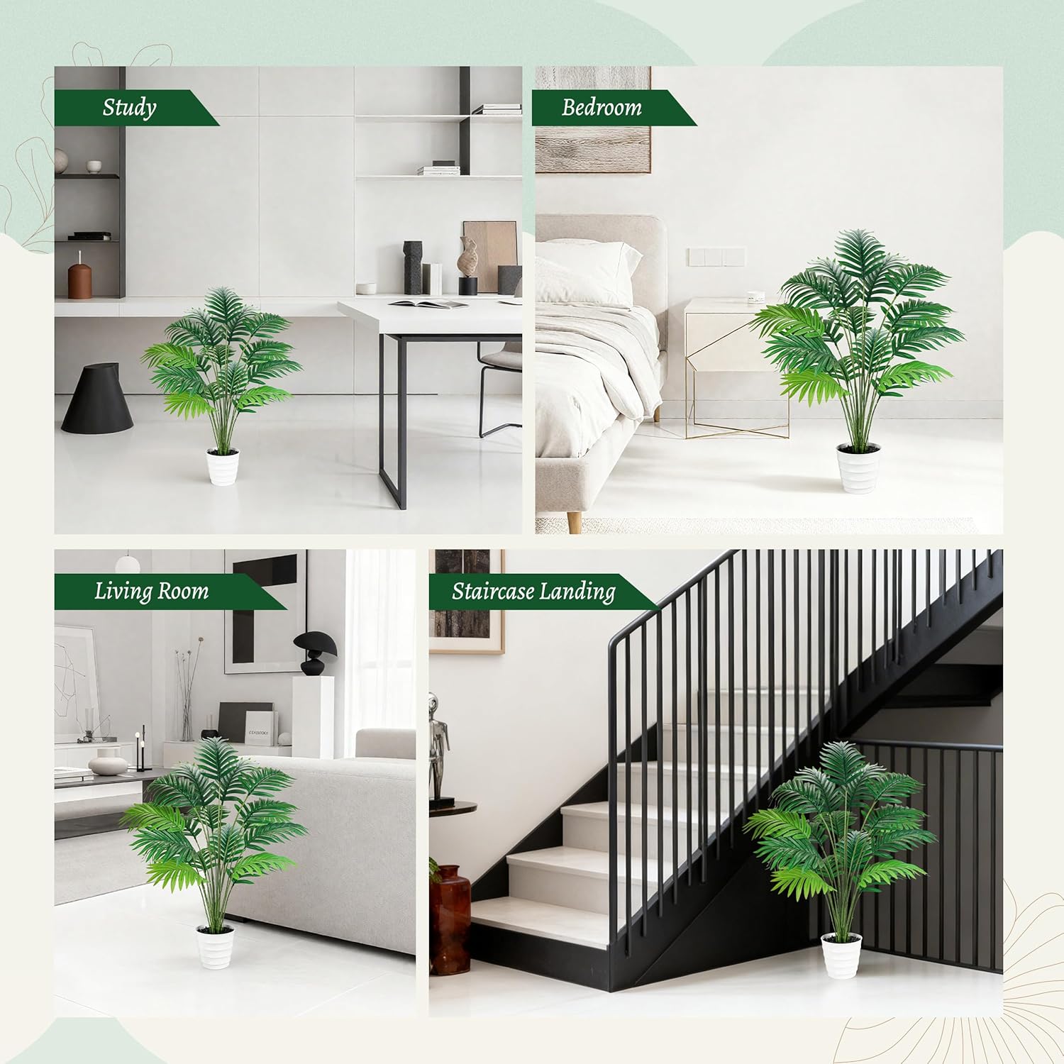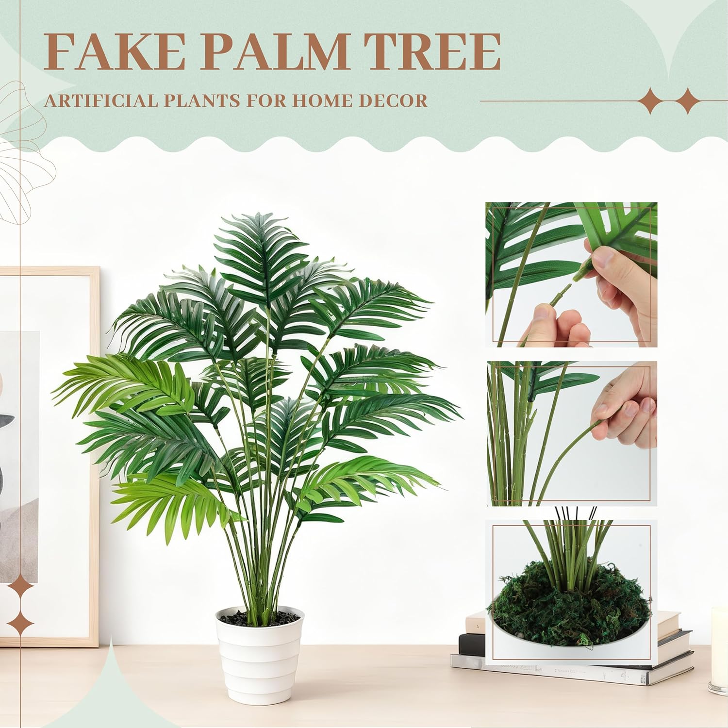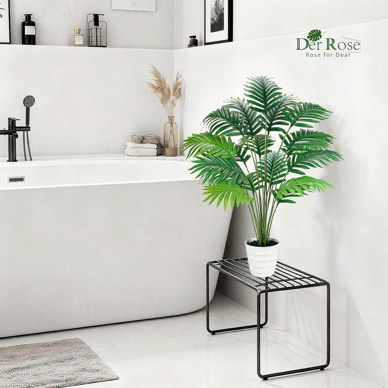 Der Rose 28" Fake Palm Tree Tall Artificial Plants Areca Faux Trees Indoor in White Pot for Home Office Living Room Floor Porch Balcony Decor quantity