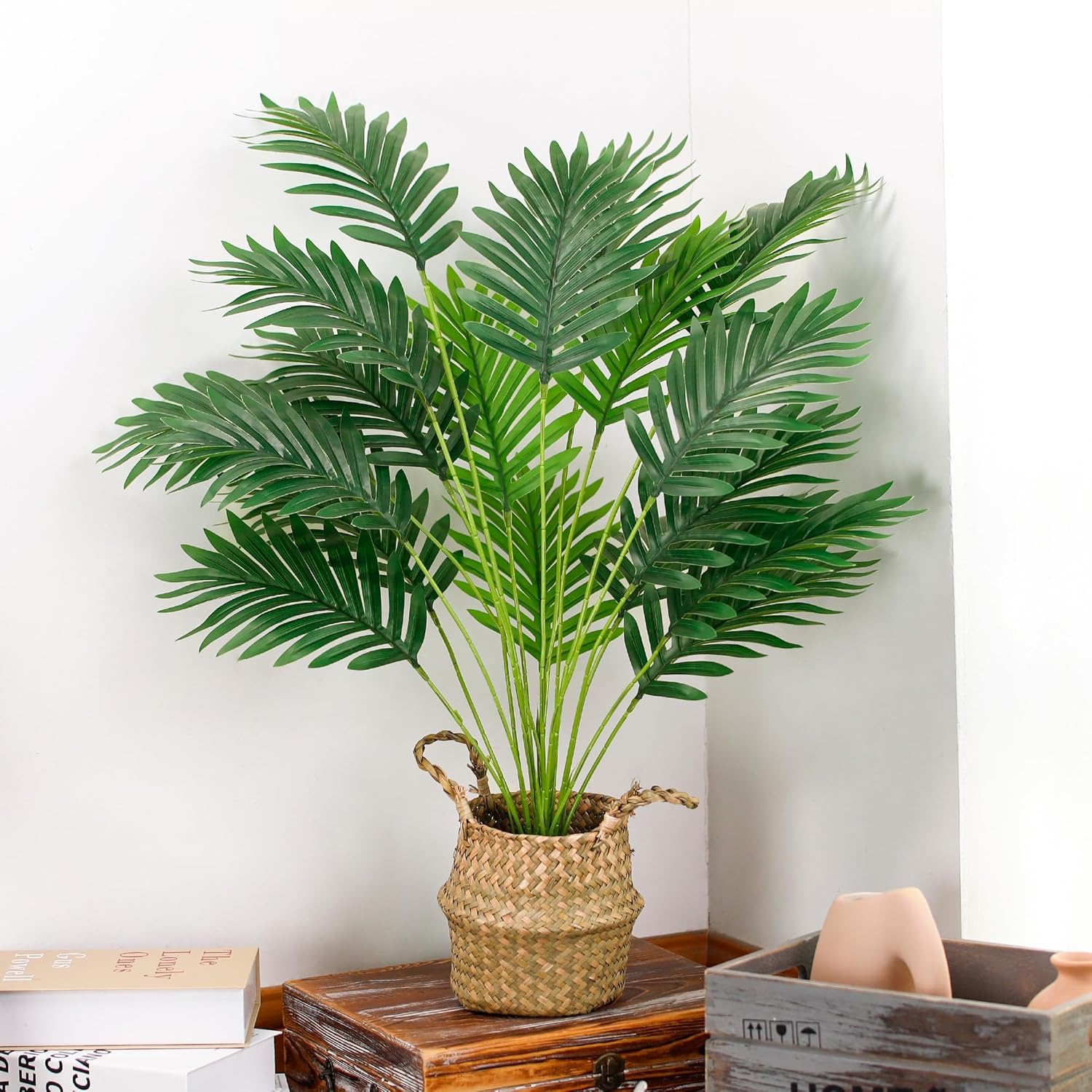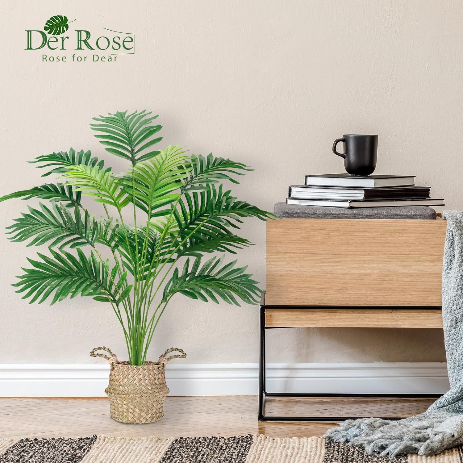 Der Rose Fake Palm Tree 28Inch Faux Plant Potted Tall Fake Plant with Hand-Woven Baskets Artificial Tree for Indoor Outdoor Home Office Bedroom Porch Balcony Decor quantity