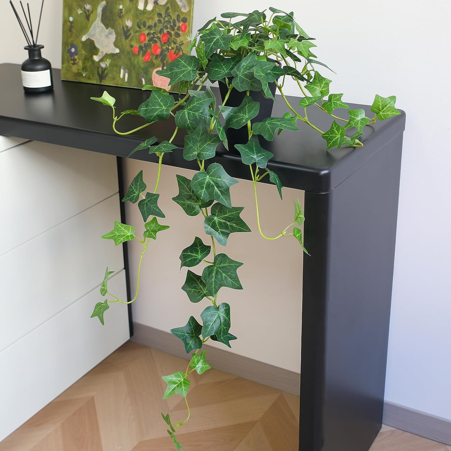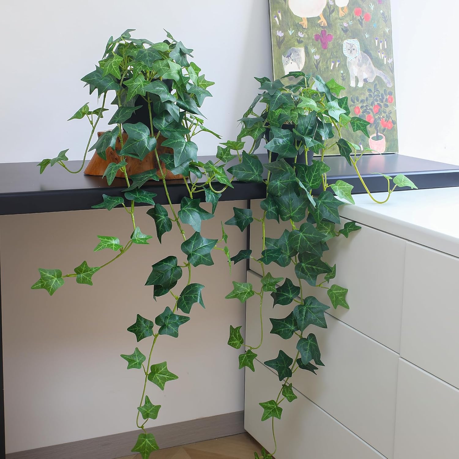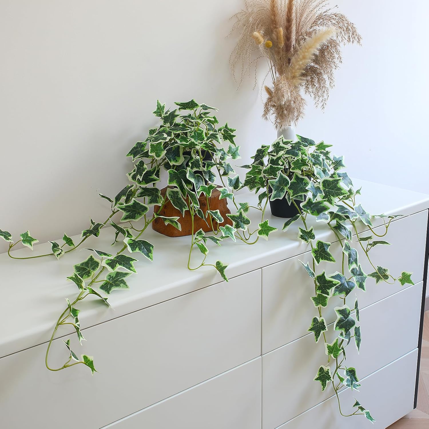 Fake English Ivy Plants in Pots Set of 2 u2013 Realistic Artificial Ivy Greenery for Home Decor, Tabletop, Office, Shelf, Balcony or Bathroom u2013 Lifelike Faux Hanging Vines, No Maintenance Required