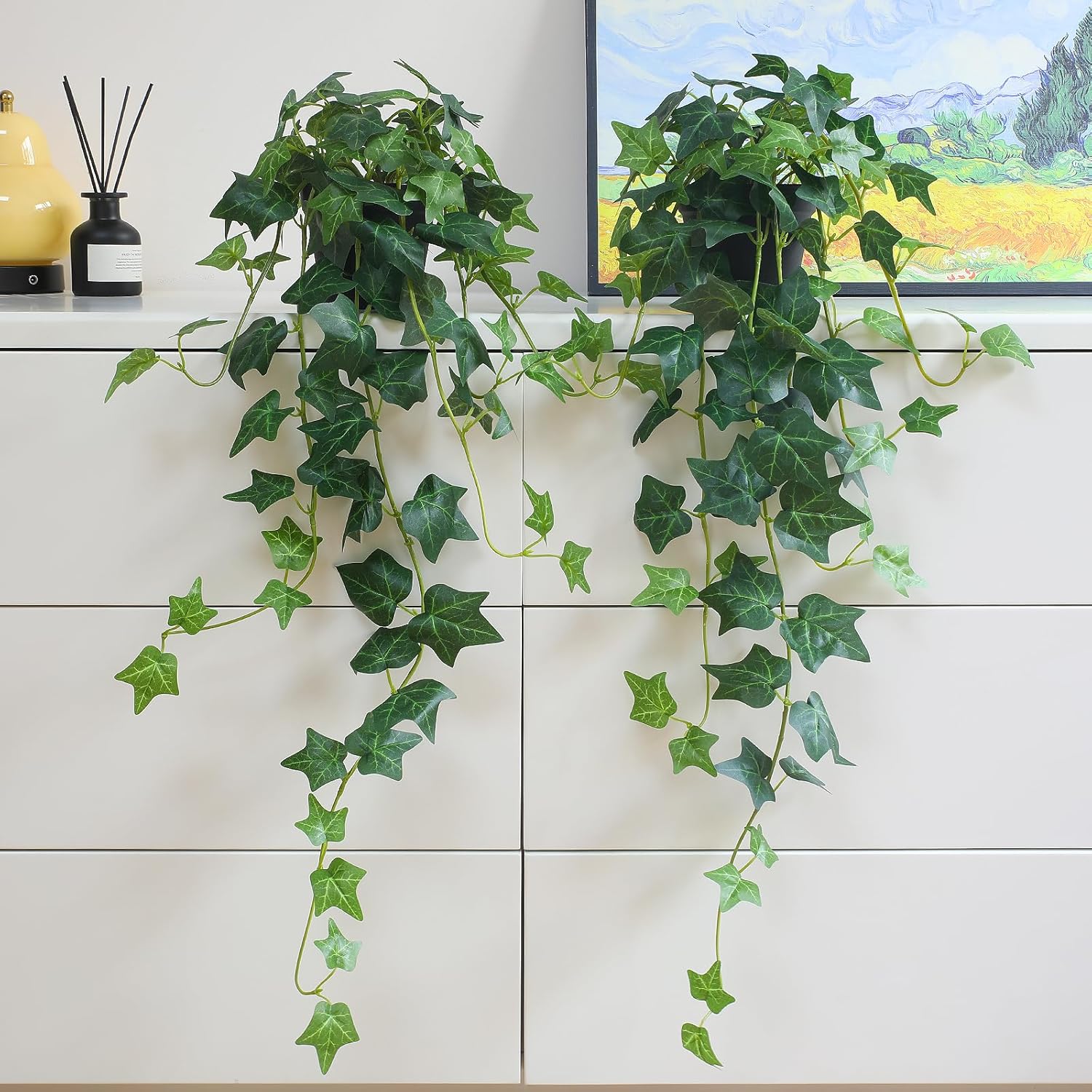 Fake English Ivy Plants in Pots Set of 2 u2013 Realistic Artificial Ivy Greenery for Home Decor, Tabletop, Office, Shelf, Balcony or Bathroom u2013 Lifelike Faux Hanging Vines, No Maintenance Required quantity