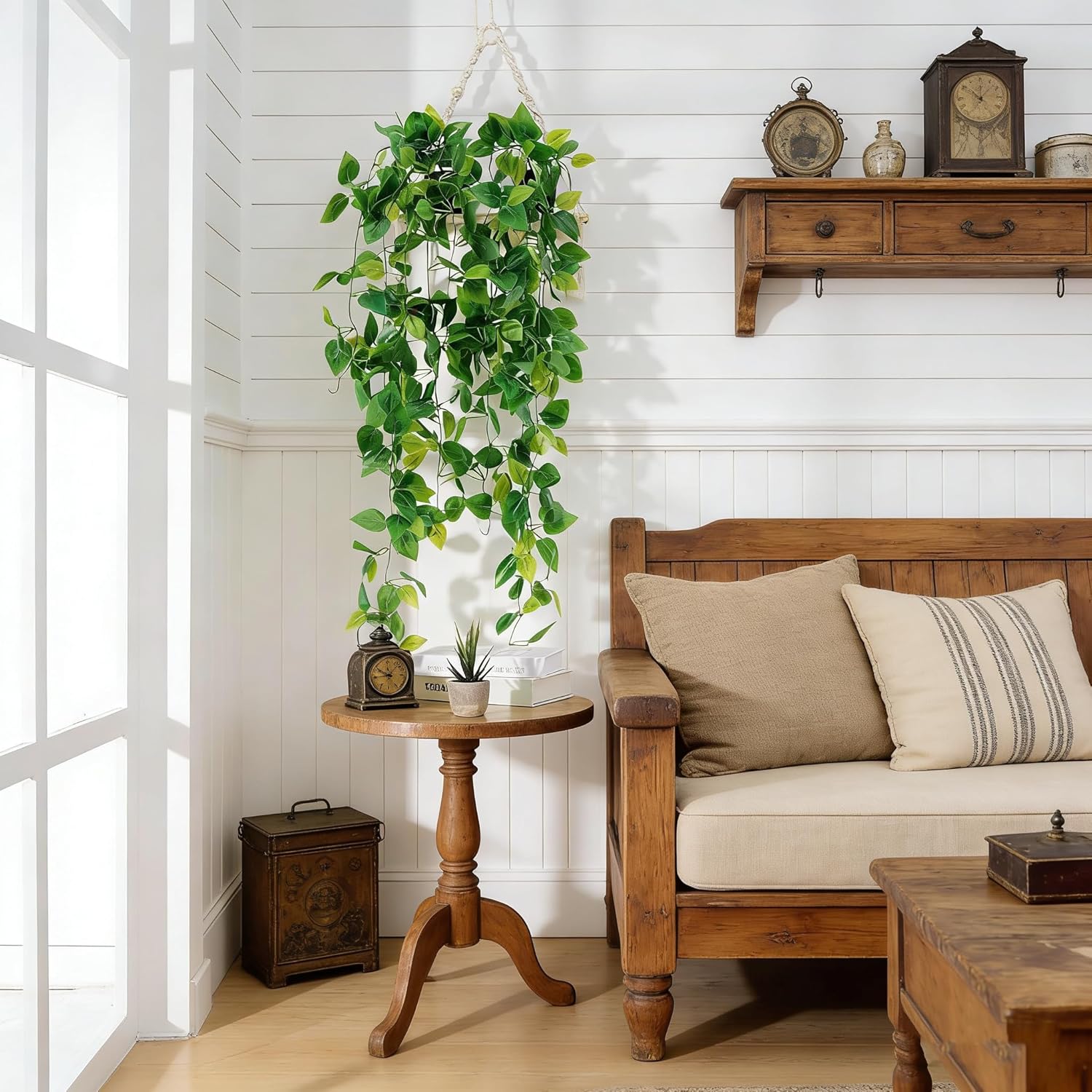 Fake Hanging Plants 2pcs Artificial Hanging Plant for Indoor Outdoor Faux Pothos Vines Greenery Garlands for Wall Home Aesthetic Patio Kitchen Living Room Farmhouse Shelf Office Decor (No Baskets)