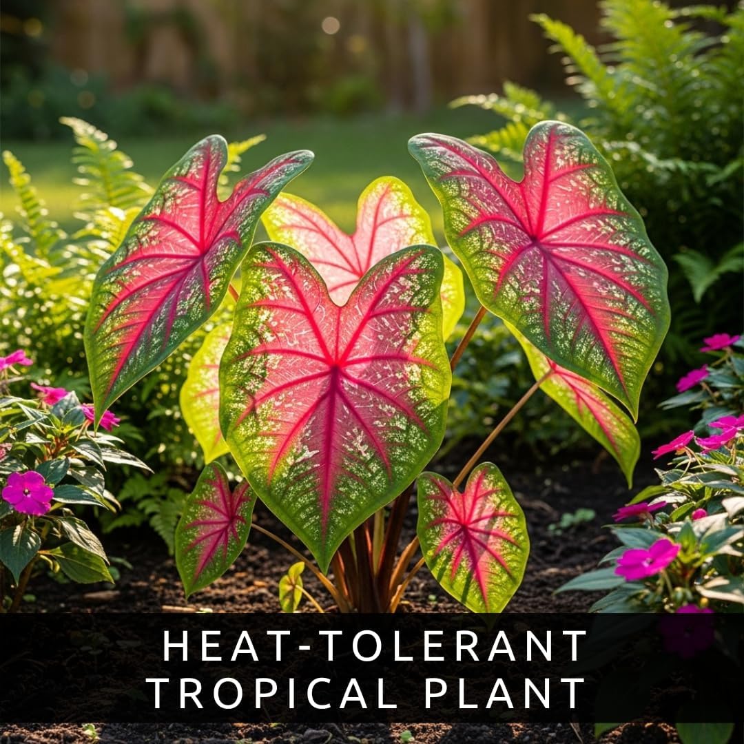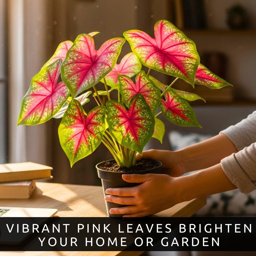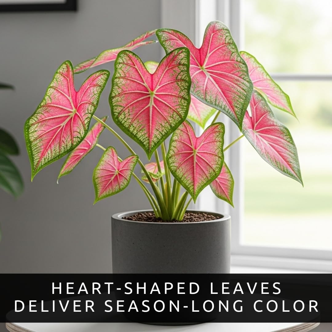 Pink Princess Caladium Bulbs for Planting u2013 Vibrant Pink & Green Spotted Leaves, Easy-Grow Shade Plant, Tropical Color for Garden Beds, Borders & Containers (6 Bulbs)